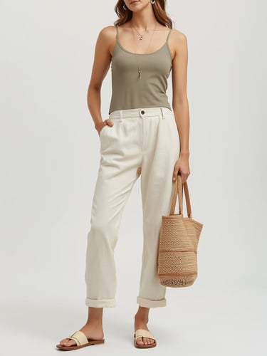 If you want something breathable but elevated, linen trousers are your best friend. They’re relaxed but polished, especially in neutral shades like beige, white, or olive.