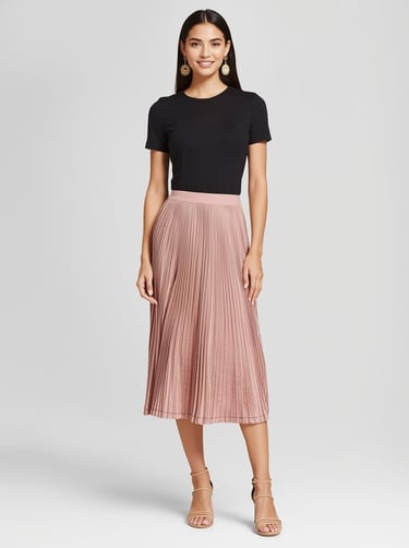 A pleated skirt adds movement and elegance without feeling too formal. Pair it with a fitted tee or bodysuit to keep the look grounded and simple.