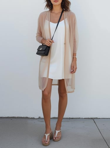 For a soft, layered look, wear a lightweight sheer cardigan over a tank or slip dress. It adds dimension while still feeling airy and breathable.