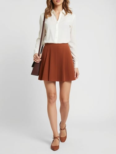 An A line mini skirt is one of the most flattering shapes. It fits slightly at the waist and flares out, creating a balanced silhouette that works on many body types.