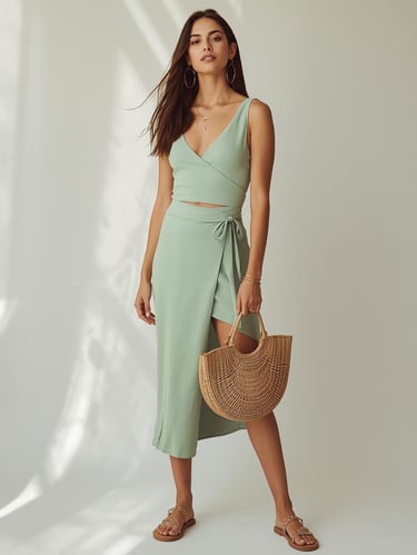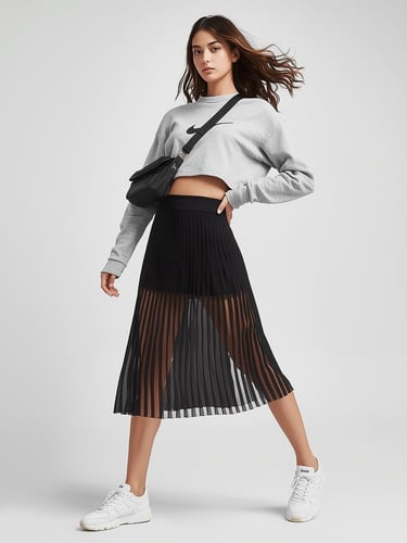 Since the skirt has more volume, I pair it with a simple cropped tank or a fitted tee to balance the silhouette. Sandals and a woven tote complete the look and give it a relaxed spring feel.