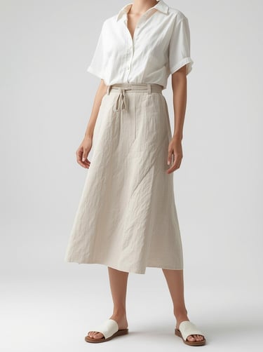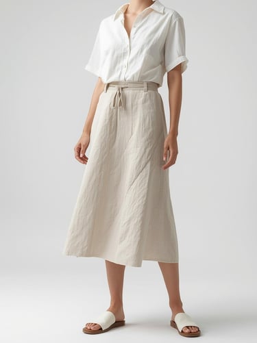 A linen midi skirt gives off an effortless and slightly coastal feel. It looks simple yet still very put together, especially when styled with other lightweight pieces.