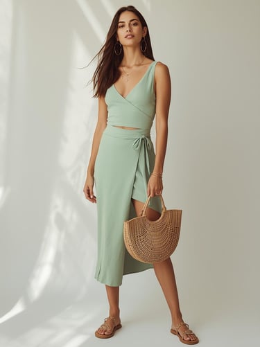 My go to outfit is a satin slip skirt with a plain white tee and kitten heels. It is simple but always looks chic. On cooler days, I add a cropped cardigan or a light blazer to create a more layered and polished look.