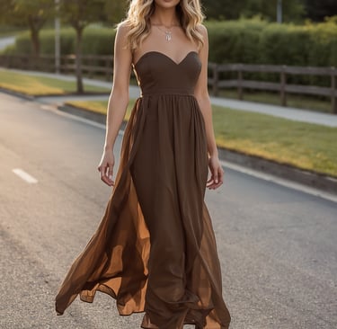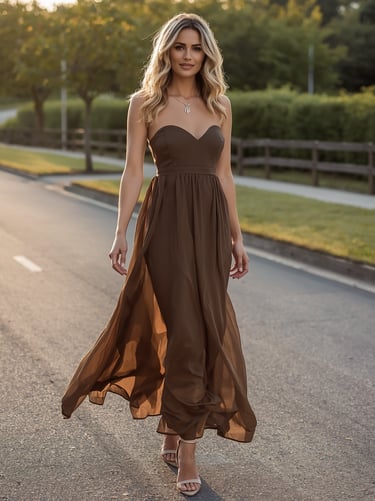 This dress stands out because of its movement. The way chiffon flows creates an effortless, almost floating effect that looks stunning in motion and in photos.