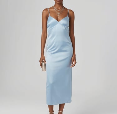 If you love a more minimal and sleek look, a satin slip dress is the way to go. It is simple but incredibly elegant, with just the right amount of shine to catch the light. This style works especially well for evening or formal weddings. You can keep it classic with neutral tones or go bold with spring colors like sage, champagne, or soft blue.