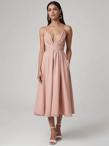 To style it, pair with white, nude, or metallic heels. Keep jewelry minimal with small hoops or studs, and go for soft, glowy makeup to match the gentle color palette.