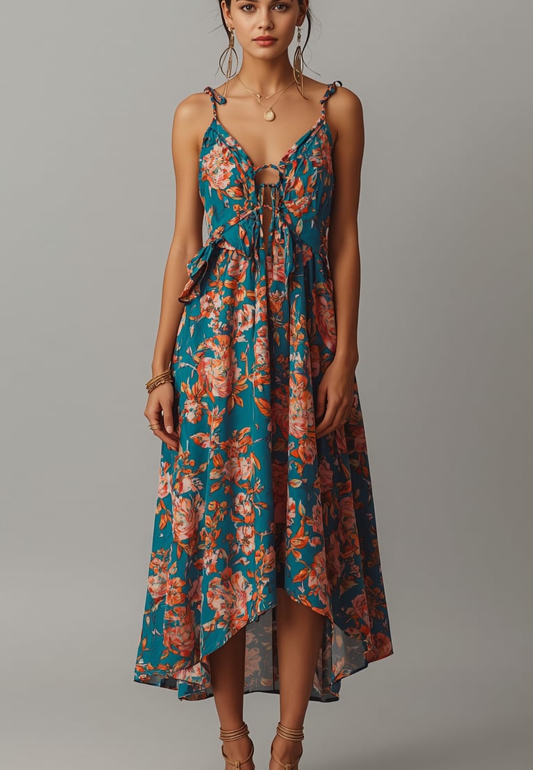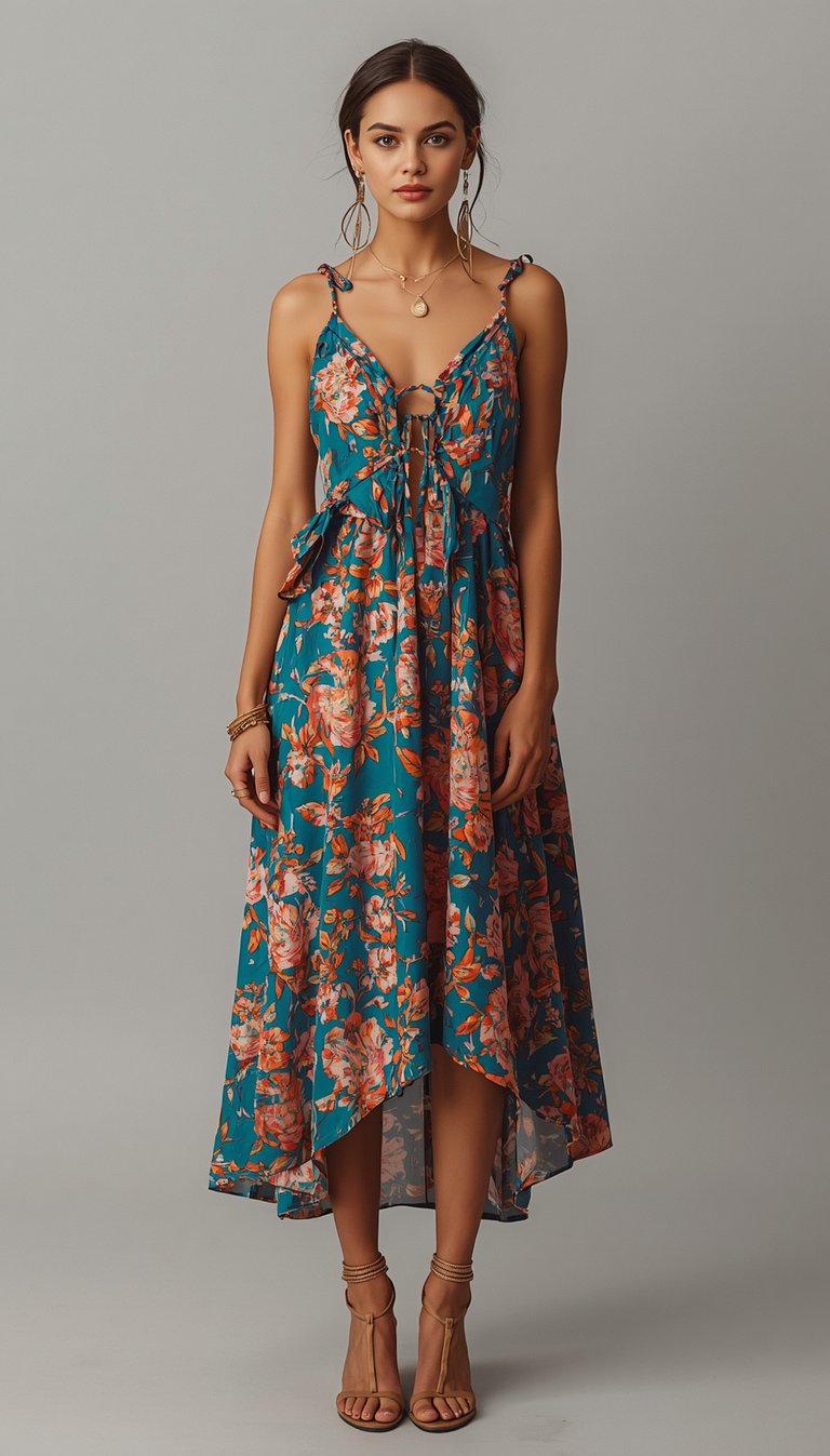 This style looks especially good because the length elongates your body while the floral print adds softness and movement. It creates a balanced look that feels elegant but not too formal.